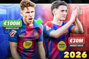 24直播网03月21日讯 近日德转更新了西甲球员身价,巴萨中场费尔明身价飙升到1亿欧元,而加维则下跌到3000万欧元。
