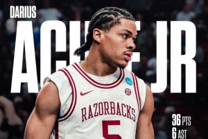 24直播网3月22日讯 NCAA疯三32强赛,阿肯色大学94-88险胜海波特大学,晋级甜蜜16强。