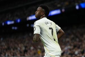 24直播网3月23日讯 西甲第29轮比赛,维尼修斯点射破门,目前皇马主场2-2马竞。