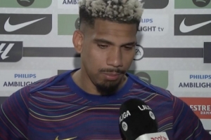 24直播网3月23日讯 西甲第29轮比赛,阿劳霍破门,巴萨主场1-0击败巴列卡诺,赛后阿劳霍接受了媒体的采访。