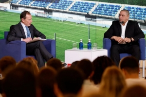24直播网3月24日讯 皇家马德里欧洲大学学校的‘白色周’活动正式启动,首日活动由俱乐部关系总监布特拉格诺主持。由皇马俱乐部的四位传奇人物罗伯托·卡洛斯、塞尔吉奥·罗德里格斯、费利佩·雷耶斯和鲁迪·费尔南德斯共同揭幕。