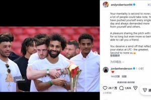 罗伯逊告别萨拉赫:与你并肩作战是荣幸,更自豪的是能称你为朋友