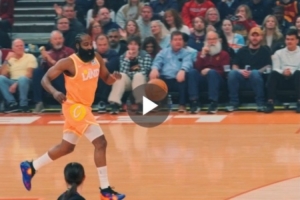 24直播网3月25日讯 今日骑士战胜魔术的比赛中,哈登上演个人赛季首扣。