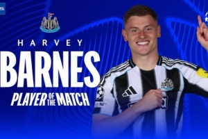 24直播网3月11日讯 欧冠1/8决赛首回合,纽卡斯尔1-1战平巴萨,纽卡前锋巴恩斯当选全场最佳。