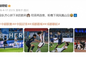 本场比赛,成都蓉城球员胡荷韬在68分钟制造点球,韦林顿·席尔瓦主罚命中,帮助球队取得领先。赛后,胡荷韬更新社媒,庆祝这场来之不易的胜利。