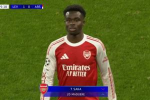 24直播网03月12日讯 欧冠1/8决赛首回合,阿森纳客战勒沃库森,萨卡表现不佳,第60分钟便被换下,获评6.3分。