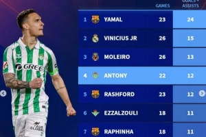 24直播网3月12日讯 德转盘点了本赛季西甲边锋位置球员在联赛中参与进球榜,其中亚马尔居首,具体榜单如下(进球+助攻):