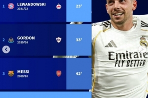 24直播网3月12日讯 在本轮欧冠淘汰赛,皇马3-0大胜曼城,巴尔韦德在42分钟就完成帽子戏法,以下为欧冠历史淘汰赛阶段最快完成帽子戏法榜单: