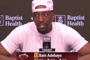 24直播网3月13日讯 NBA常规赛,热火主场112-105击败雄鹿,阿德巴约赛后接受了媒体采访。