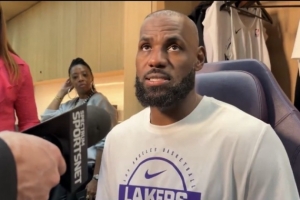 24直播网3月13日讯 今日,湖人142-130主场击败公牛,取得四连胜。赛后,湖人球星詹姆斯接受了采访。