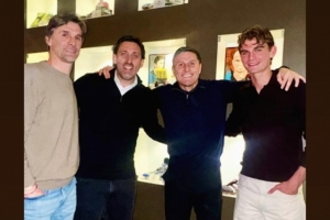 24直播网3月13日讯 国米副主席萨内蒂的妻子更新社交媒体,晒出了帕斯父子与萨内蒂、米利托的合照。