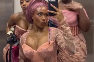 24直播网3月14日讯 《太阳报》报道,萨卡的女友托拉米·本森近日在一场婚礼上以一袭低胸礼服惊艳亮相。