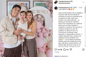 24直播网3月15日讯 3月14日是曼联后卫利桑德罗·马丁内斯女儿奥罗拉1岁生日。在社交媒体上,阿根廷铁汉展示出了柔情一面,给女儿送上了爱的告白。
