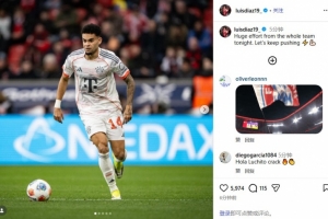 24直播网3月15日讯 德甲第26轮,拜仁1-1战平勒沃库森。赛后,拜仁边锋路易斯·迪亚斯在社交媒体发文,鼓励球队。