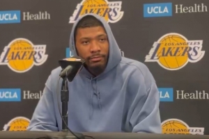 24直播网3月15日讯 NBA常规赛,湖人主场127-125加时险胜掘金,赛后斯玛特接受采访。