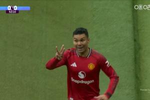 24直播网03月15日讯 英超第30轮,曼联vs维拉。比赛第52分钟,曼联角球机会,B费助攻卡塞米罗破门,曼联1-0领先维拉。