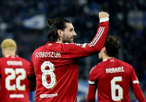 24直播网3月16日讯 英超第30轮,利物浦主场迎战热刺,索博斯洛伊任意球破门。