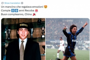 24直播网3月17日讯 今天是“中国男孩”雷科巴50岁生日,国米官方也晒出球员旧照为其送上生日祝福。