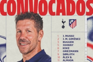 24直播网3月17日讯 北京时间3月19日凌晨,马竞将在欧冠1/8决赛次回合比赛中客场对阵热刺,首回合马竞5-2取胜,马竞公布了此役的球员名单,奥布拉克、门多萨、巴里奥斯缺席。
