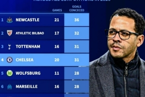 24直播网3月18日讯 在欧冠淘汰赛次回合,切尔西0-3不敌巴黎。以下为自2026年各项赛事丢球榜,其中切尔西31球第四。