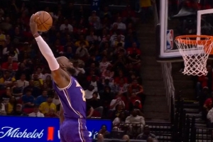 24直播网3月19日讯 湖人客场再战火箭,截至发稿詹姆斯已经上演3次炸裂扣篮。