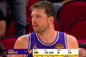 这是东契奇连续第五场在休斯敦砍下35+,历史最长!