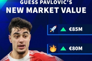 24直播网3月20日讯 德国转会市场更新社媒动态,预热拜仁中场帕夫洛维奇的身价变动,球员身价确定上涨。
